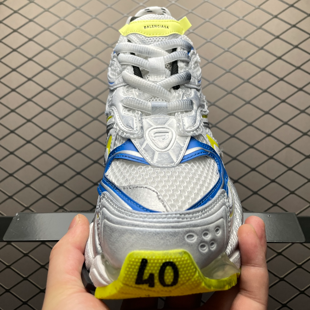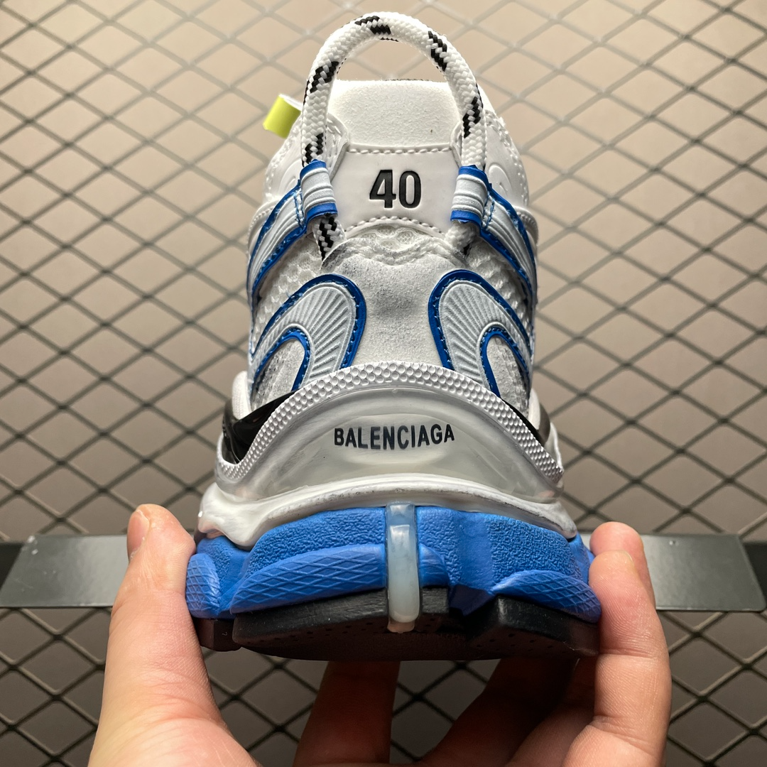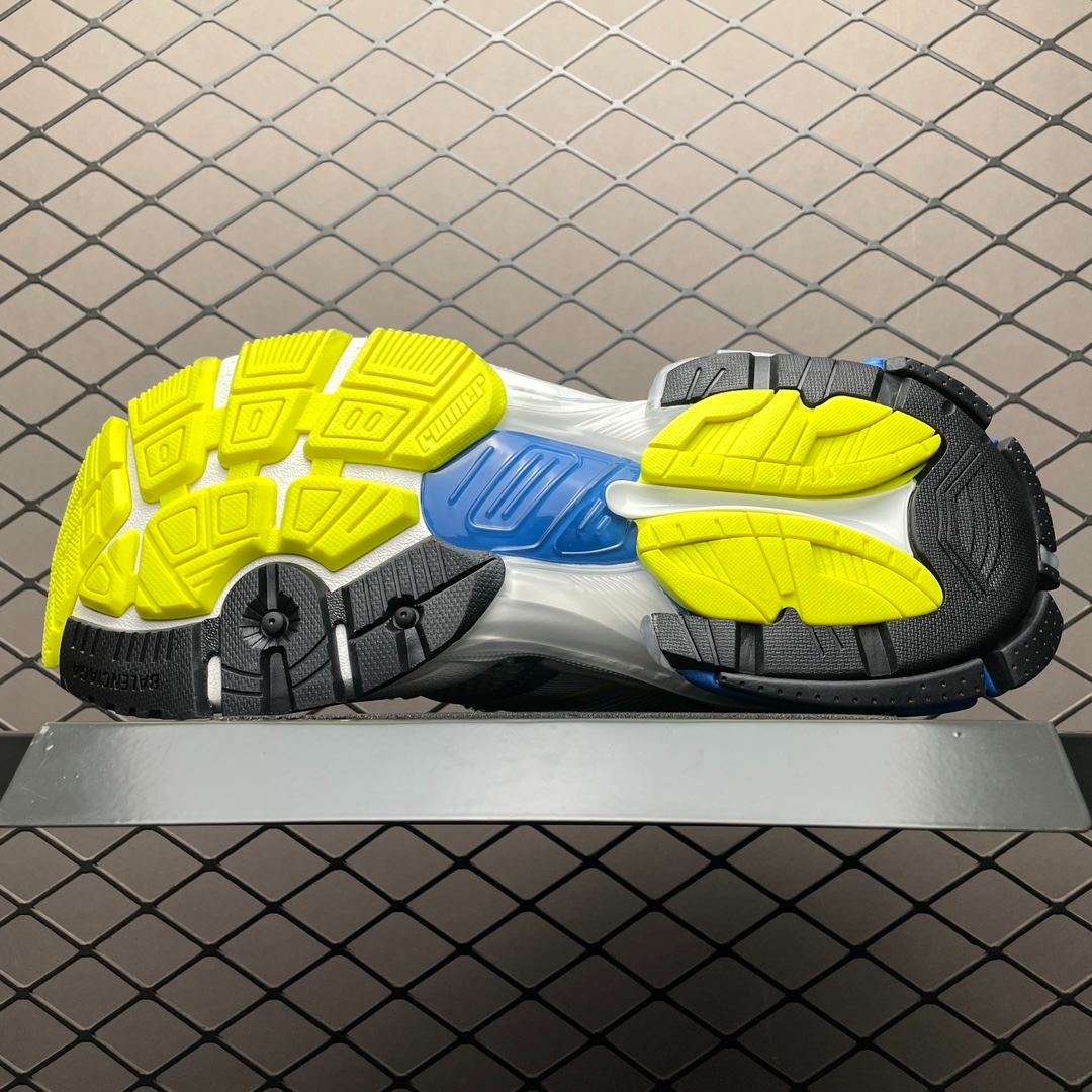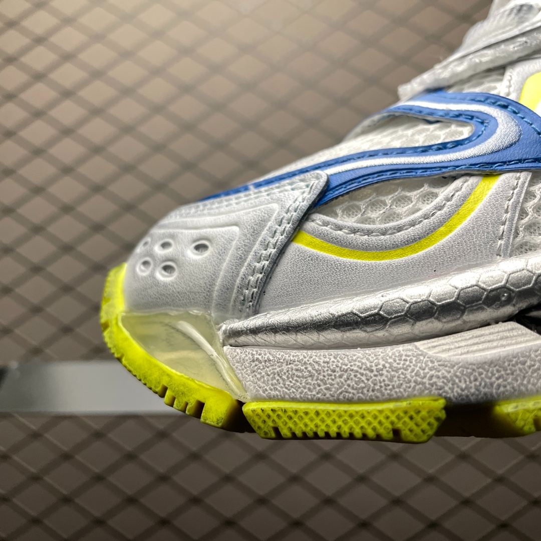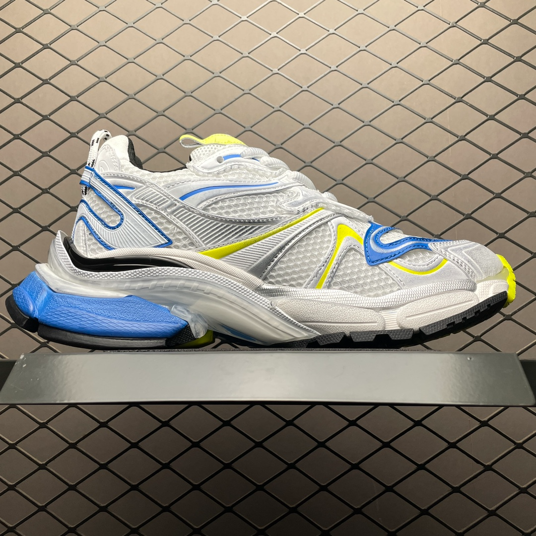ホワイト/イエロー/ブルーのバレンシアガ メンズ ランナー 2.0 スニーカーは、モダンなデザインと高品質の素材を使用した優れた快適性を兼ね備えています。明るい白、黄色、青の配色は、多くの靴の中で際立っており、活力と個性を示しています。軽量ソールと高度なクッショニング技術により、優れたサポート性と快適性を実現し、日常着やスポーツシーンに最適です。