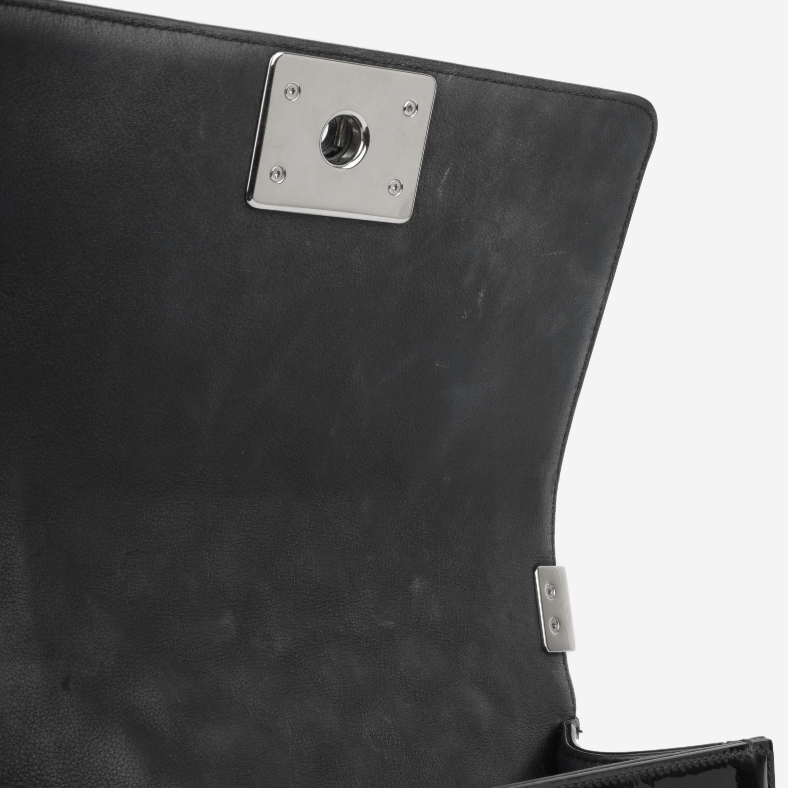 The 'Boy' bag. first introduced in 2011 and named after Coco Chanel's lifetime love. is part of their iconic collection. This particular edition is created usingblack patent leather and can be worn with the chaindoubled up over the shoulder for an evening look or wear cross body for a more casual style.