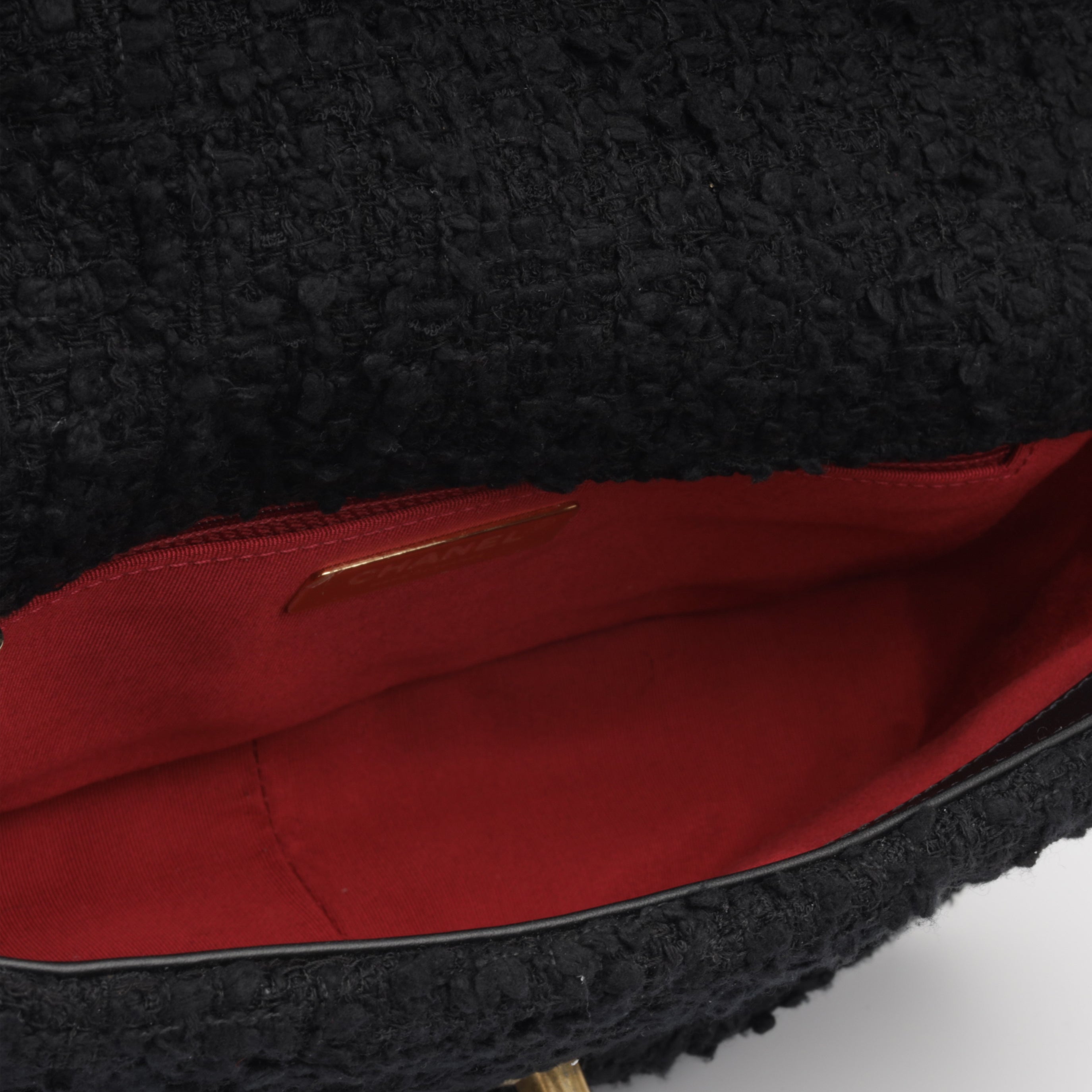 For timeless Parisian-chic there is no better investment than a Chanel flap bag. This particular Chanel 19 is crafted Chanel's bouclé tweed in a monochrome colour scheme.The interwoven chain sits elegantly on your shoulder or doubled up on your arm. Under the creative direction of Karl Lagerfeld. Chanel continues with its line of classic quilted bags.