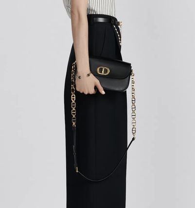 メゾンを象徴するラインに新たに仲間入りした タイムレスでエレガントなスタイルの「30 モンテーニュ アベニュー」バッグ。ブラックのボックスカーフスキンを使用し 優美なカーブを描くラウンドフラップと ディオールの香水ボトルの栓にインスピレーションを得たアンティークゴールドトーンのメタル製CDクラスプをあしらっています。そのほかにも 背面を飾るエンボス加工の30 Montaigneシグネチャーなど こだわりのディテールを多数散りばめたデザイン。シグネチャーのチェーンは 本体レザーと同系色のエナメルリンクを ゴールドトーンのメタルリンクと交互に配して仕上げました。ゆったりとした上品なシルエットのマチ付きバッグは ハンドバッグとしてはもちろん ショルダーバッグやクロスボディバッグとしても活躍します。