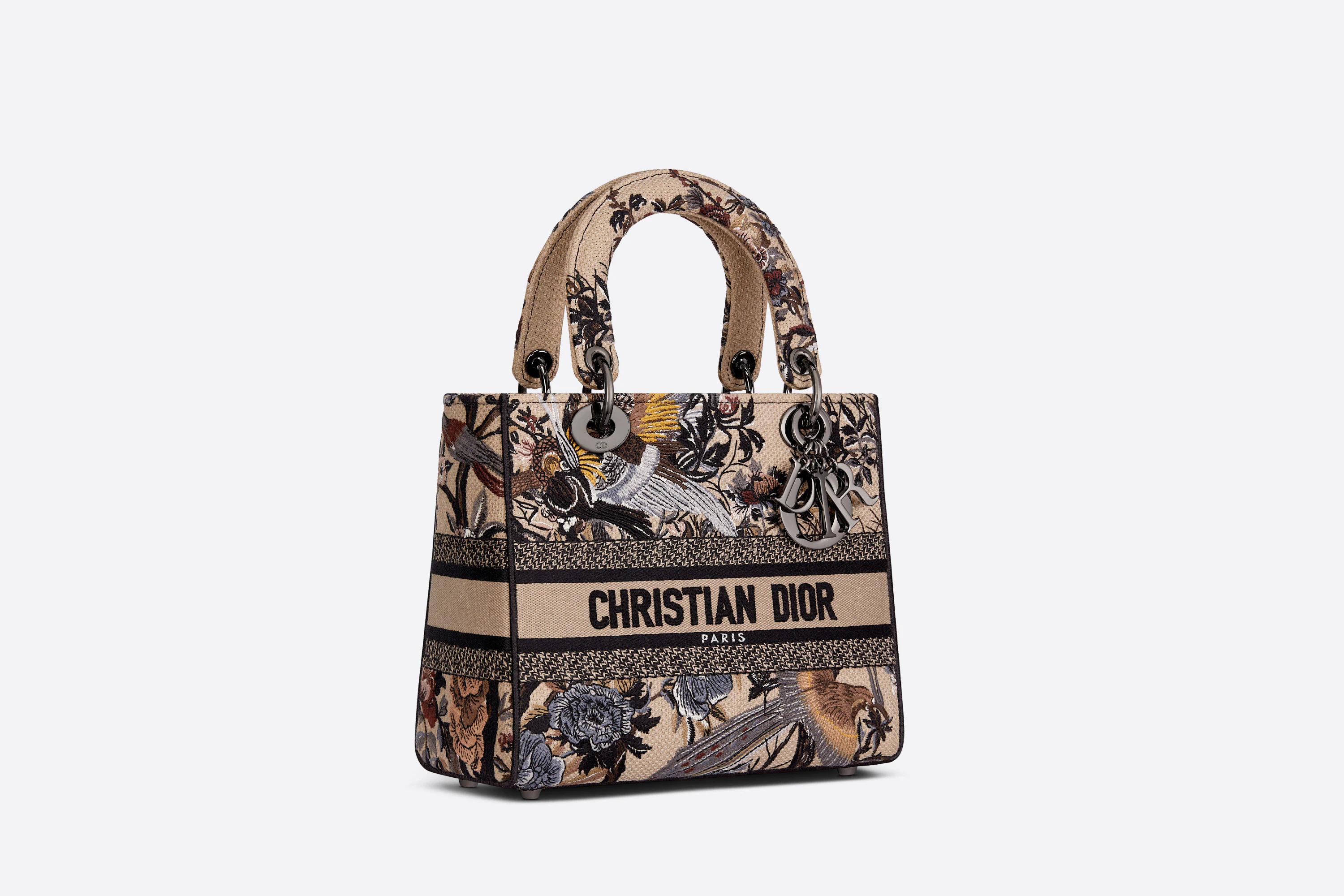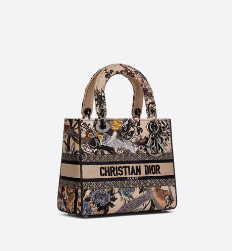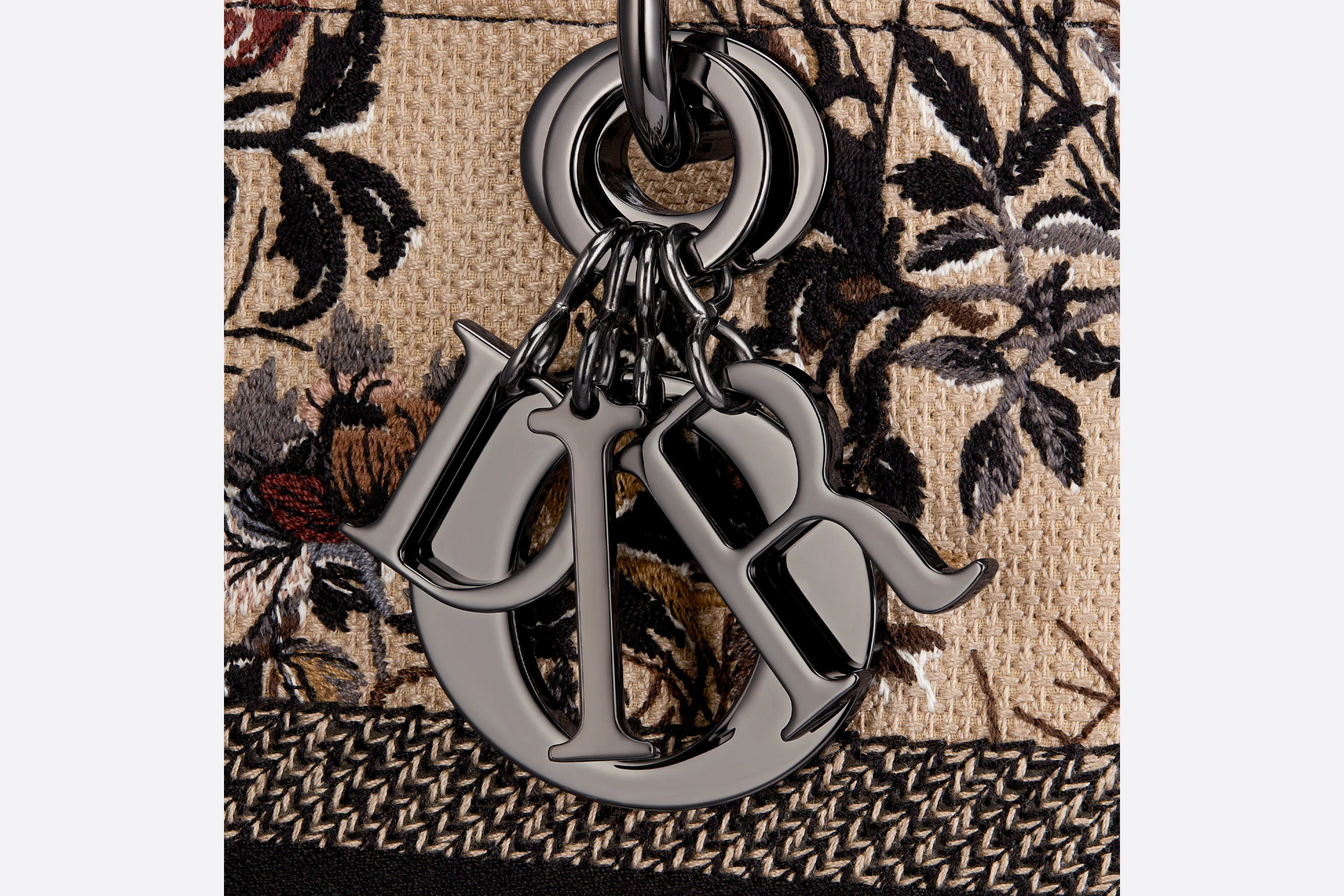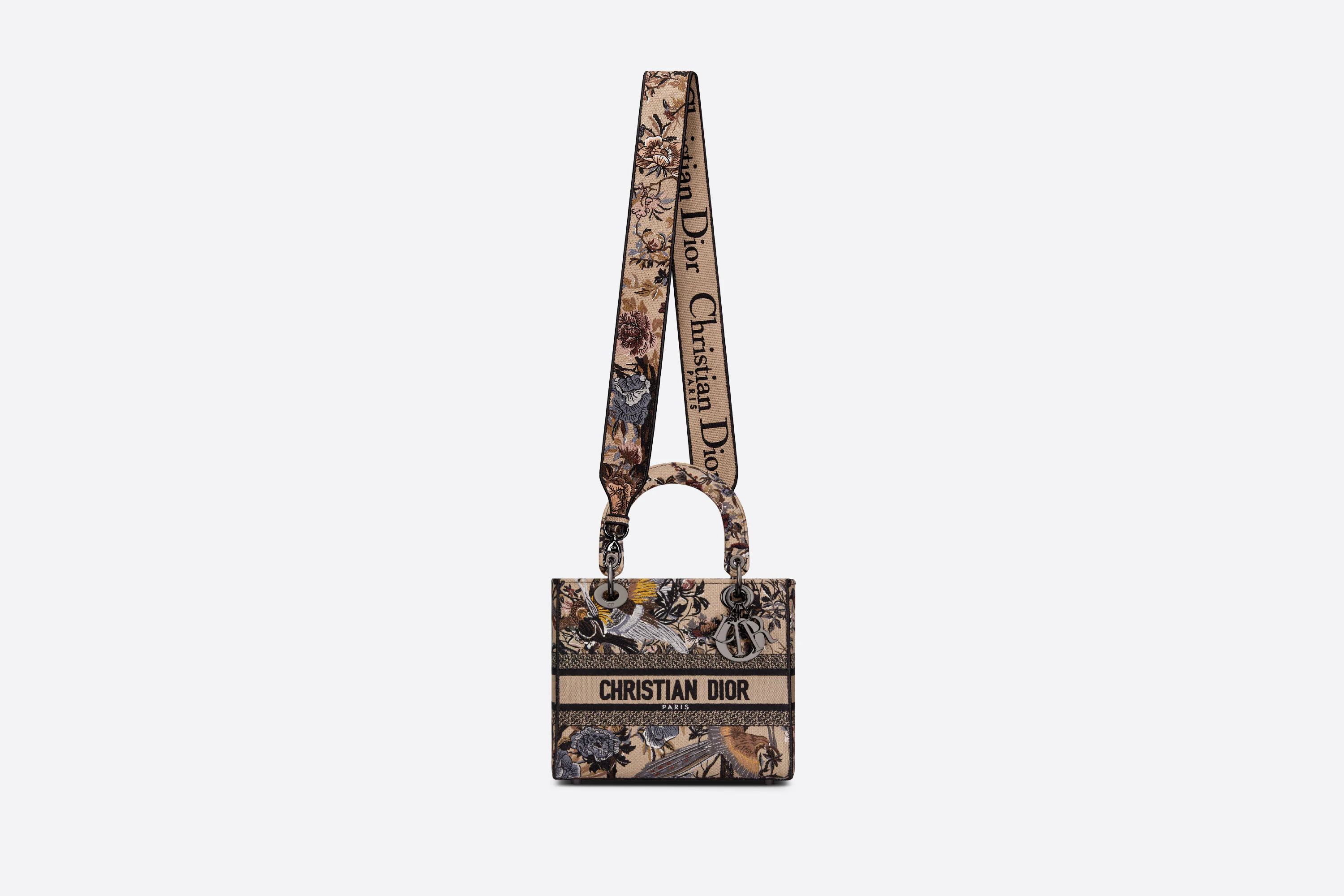 クラシックなエレガンスとメゾンのモダニティを併せ持つ「Lady D-Lite (レディ D-ライト)」バッグ。ムッシュ ディオールの邸宅の壁にあったタペストリーをポエティックかつエキゾチックな解釈で表現した、ベージュ マルチカラーの「Dior Jardin d'Hiver (ディオール ジャルダン ディヴェール)」モチーフの刺繍を全面に施したデザインです。フロントにあしらったCHRISTIAN DIOR PARISシグネチャーと、ルテニウムコーティングを施したメタル製D.I.O.R.チャームが、シルエットを引き立てます。幅広でリバーシブルの刺繍入りショルダーストラップは取り外すことができ、手提げスタイルはもちろんクロスボディバッグとしてもお使いいただけます。
