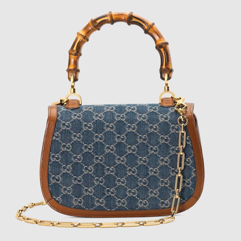 象徴的なバンブー ハンドルとモノグラム モチーフをあしらったこのバッグは、