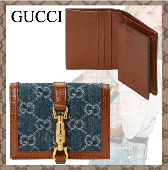 〔ジャッキー 1961〕ラインにミニサイズのカードケース ウォレットが登場。ハンドバッグに着想を得たデザインをエコ ウォッシュド GGジャカードデニムで仕立てました。ゴールドトーンのピストン ディテールは、1961年に誕生したオリジナルの〔ジャッキー〕バッグへのオマージュです。