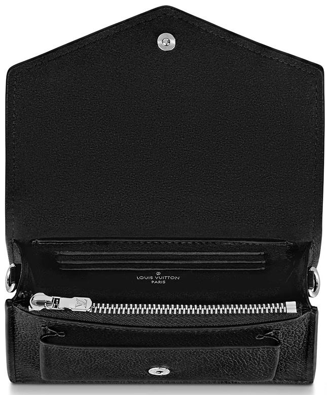 こちらは新作のポシェット・ロックミーチェーンのミニです。とても小さくて可愛らしいデザインとなっております。しかし 驚くのはこのミニサイズのポシェットには沢山の機能が詰まっています。 プッシュボタン形式のフラップを開けるとマチ付きの外ポケット 内側には3つのカードポケット そしてその上にはフラットポケット そして何より嬉しいのがコインや大切な物を収納出来るファスナー付きのコンパートメントが付いています。チェーンストラップはショルダーはもちろん クロスボディにするにも十分な長さがあります。またこのチェーンは取外し可能ですのでお財布としてもご使用出来ます。