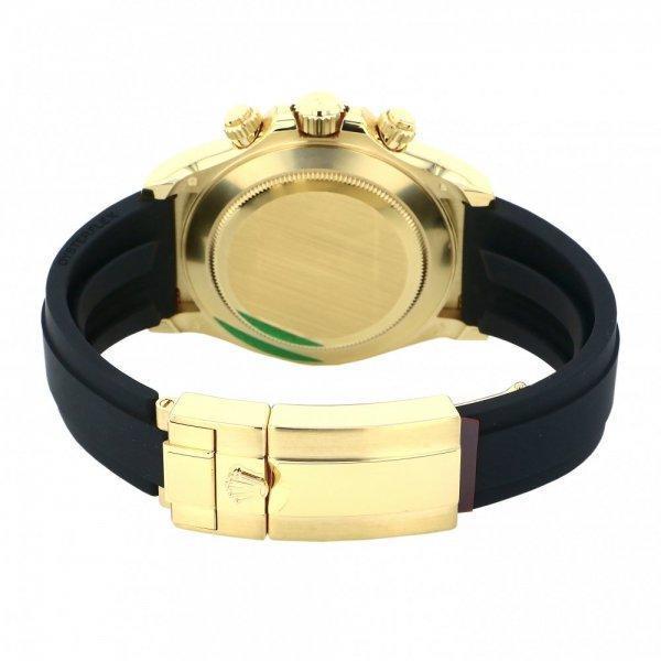 18 ct イエローゴールドのオイスター パーペチュアル コスモグラフ デイトナは、シャンパンカラーダイアルとオイスターフレックスブレスレットを備え、ブラック セラクロムタキメーターベゼルが特徴的である。