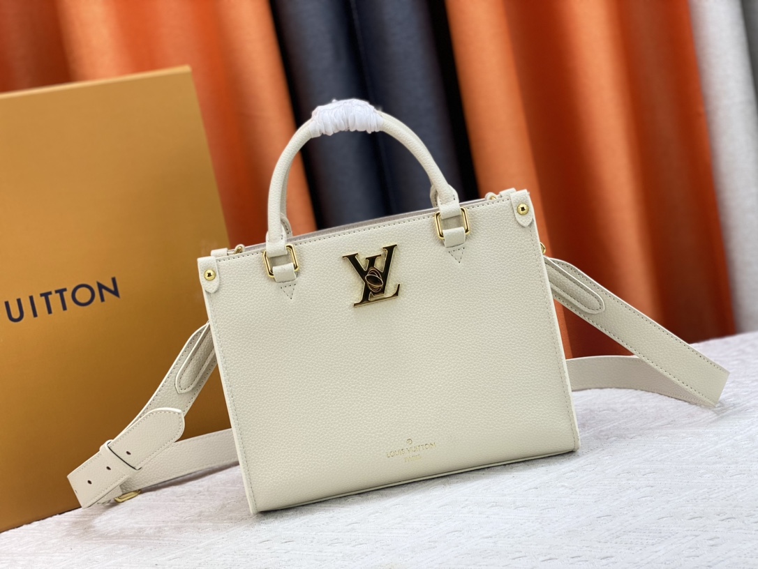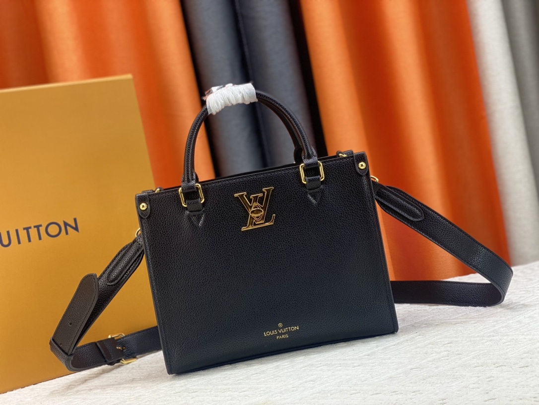 なめらかなグレインカーフレザーを使用して仕立て 艶やかなLV ターンロック 刻印入りのビス(鋲) ホットスタンピング(焼印)で施したLouis Vuittonシグネチャーで仕上げました。