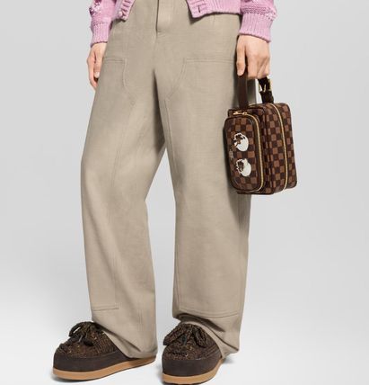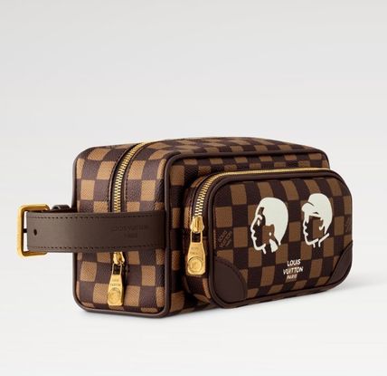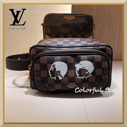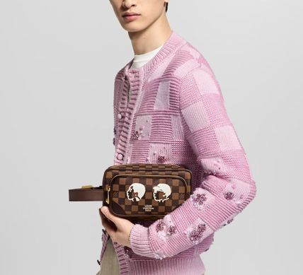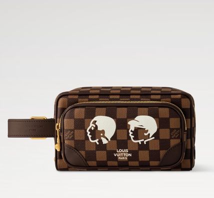 Louis Vuittonのドップ キット クラッチバッグは、ダミエ エベヌ キャンバスとダークブラウンのレザーを組み合わせ、ファレル・ウィリアムスと日本人クリエイターNIGOのコラボレーションによるデザインが特徴的なセカンドバッグです。シンプルな顔のイラストがプリントされ、内装にはNIGOによる大胆なパターンが施されています。カーゴスタイルの外ポケットが、実用性を兼ね備えたデザインに仕上げています。