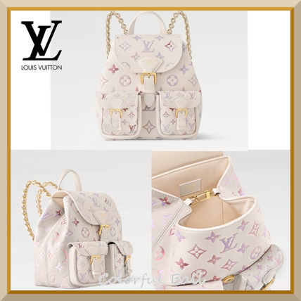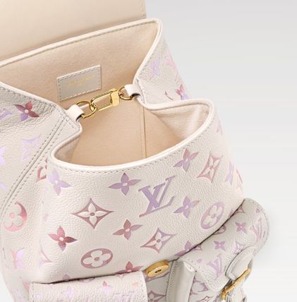 今シーズン「ドリーム」のテーマを受けてアップデートされたバックアップ リュックは、Louis Vuittonのアイコニックなモノグラムパターンをベースにしたデザインが特徴です。ユニークな水彩画風のグラデーションが施され、華やかな印象を与えます。エンボス加工が施されたグレインレザーに、エレガントな編み上げチェーンと明るいゴールドの金具がアクセントとなり、上品でありながらも強さを感じさせます。前面には、マグネット開閉式のフラップポケットがあり、小物を安全に収納可能です。