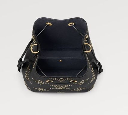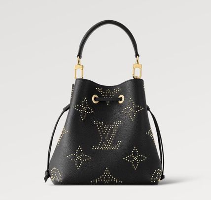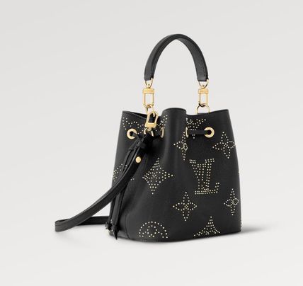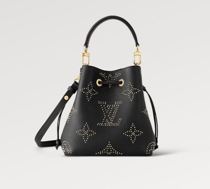 このネオノエ BB バケット バッグは、0.25 ミクロンのゴールドでコーティングされたスタッズで構成されるオリジナル バージョンのモノグラム パターンで飾られています。