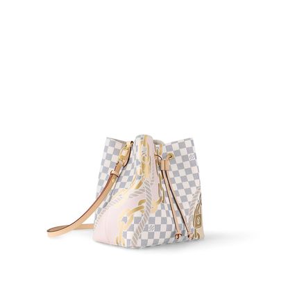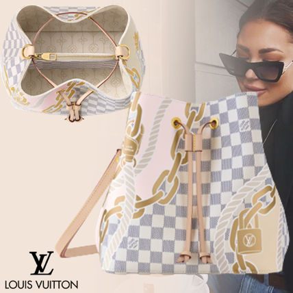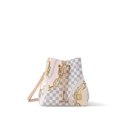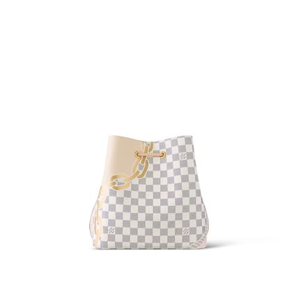 夏に相応しくアップデートした ボディフレンドリーな「ネオノエ MM」。ダミエ アズール キャンバスを 大胆でありながらフェミニンな雰囲気を演出する ロープとチェーンで表現したマリンスタイルのプリントで彩りました。長さを調節できるストラップで ショルダーキャリーやクロスボディキャリーでもお楽しみいただけます。所持品をしっかり収納できる ファスナー開閉式の内ポケットも魅力です。